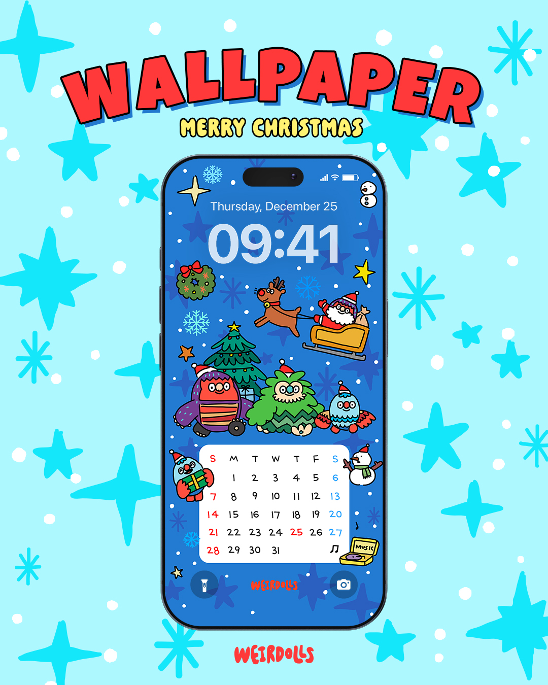 2025년 12월 위어돌스의 휴대폰 배경화면을 공유합니다.올해도 어느새 12월이 찾아왔네요.한 해를 잘 마무리하시길 바라며,크리스마스 테마로 배경화면을 준비했어요 🎄🎅🏻자유롭게 다운받아 사용하세요! <배경화면 다운로드 방법>1. 이미지를 꾹 누르고 내 폰에 저장 또는 다운로드를 선택하세요.2. 화면 크기에 따라 이미지 사이즈를 조정하여 사용하세요. 참고해 주세요:이 이미지는 개인적인 용도로만 사용 가능하며,상업적 사용 및 무단 배포는 금지됩니다.위반 시 법적 책임이 발생할 수 있습니다.©2025. WEIRDOLLS ALL RIGHTS RESERVED. We’re sharing Weirdolls’ December 2025 mobile wallpaper!It’s already the last month of the year time really flies.We prepared a Christmas themed wallpaper hoping it helps you wrap up the year on a cozy, cheerful note 🎄🎅🏻Feel free to download and use it! <How to Download the Wallpaper>1. Press and hold the image, then select Save to Phone or Download.2. Adjust the image size according to your screen dimensions. Please note: This image is for personal use only.Commercial use or unauthorized distribution is strictly prohibited.Any violations may result in legal liability.©2025. WEIRDOLLS ALL RIGHTS RESERVED. ↓다운로드 이미지↓↓ Download Image ↓ 메리 크리스마스Merry Christmas IOS Android